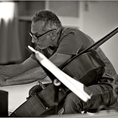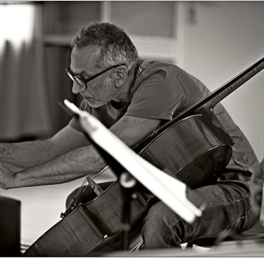 Classical cello training, classical cello diploma and jazz D.E, learning the orchestra with maestro Jean Claude Hartemann, exploring the sound fields and improvisation of the cello.