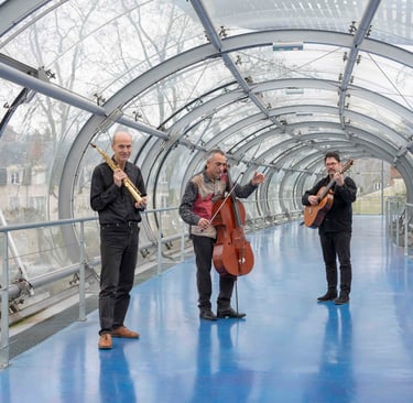 Palacio Trio: Saxophone soprano et compositions Jean-Jacques Ruhlmann, guitare 7 cordes nylon Olivier Cahours, et Alain Grange violoncelle, la magie acoustique au travers d'une amitié de plus de 30 ans... Le site du trio est ici: https://algrange1.wixsite.com/palacio