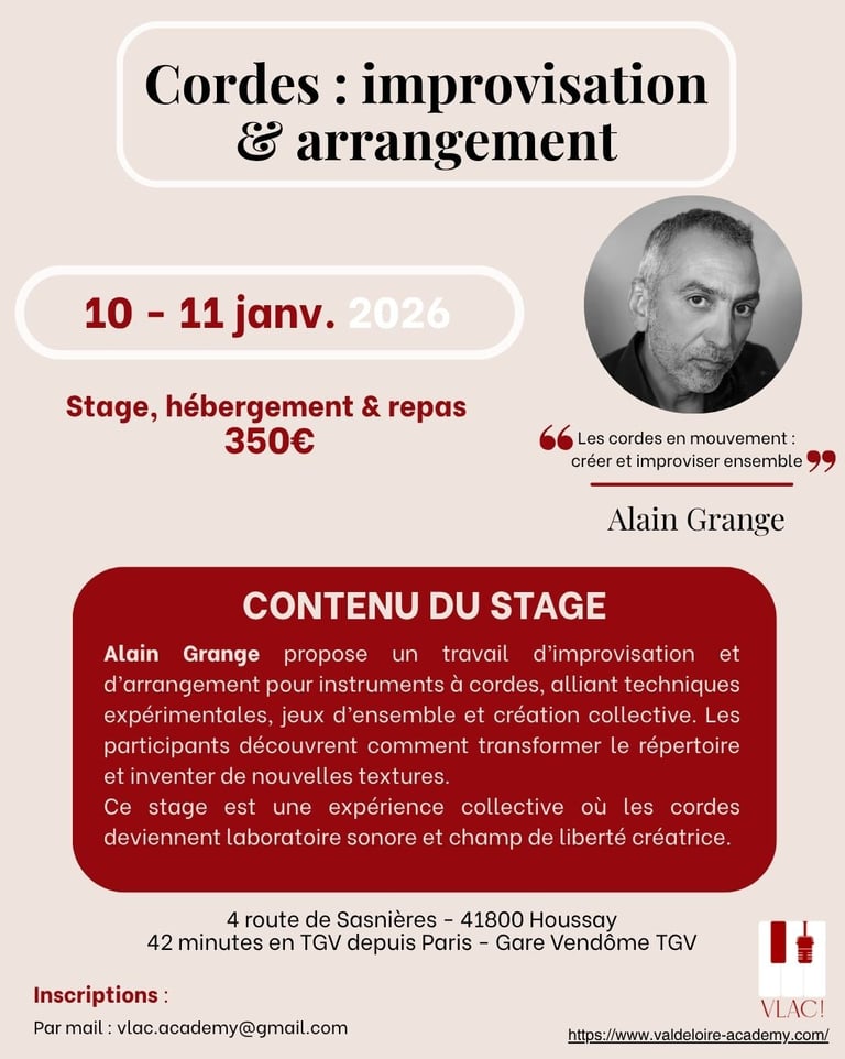 Stage d'hiver, l'improvisation en orchestre à cordes, 2 jours, inscriptions: https://www.valdeloire-academy.com/stages